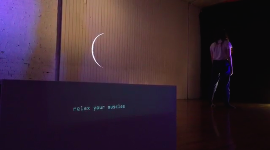 In late March, through the National Arts Centre’s Canada Performs initiative, the duo live-streamed Chapple’s Retracing: we move forward through time from the 45 West studio. Chapple was inspired to submit the solo after noticing an abundance of music on the online platform, and no dance whatsoever. Filmed on an iPhone by Spence, in Retracing Chapple moves her body like a slow-motion wave across a dimly lit white room. In the background, a projected moon slowly moves from a sliver to full. Phrases are projected onto a white box in the foreground, such as “You are different each iteration.” This kind of meditative movement score seems apt in a time when people are isolating in their homes, letting go of their busy pre-pandemic lives and adjusting to a new pace.