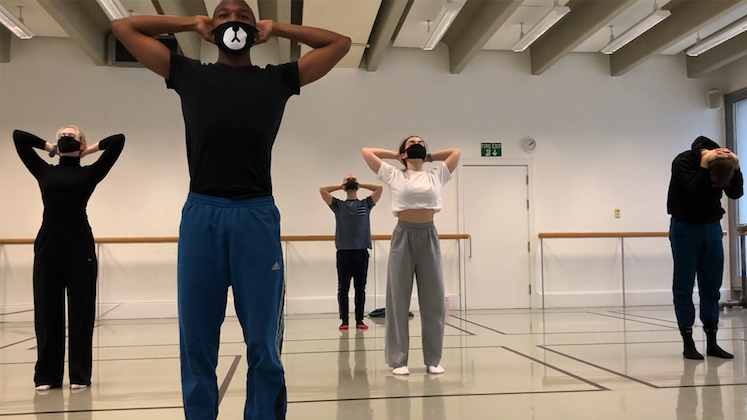 Students in studio at London Contemporary Dance School | Video still courtesy of LCDS