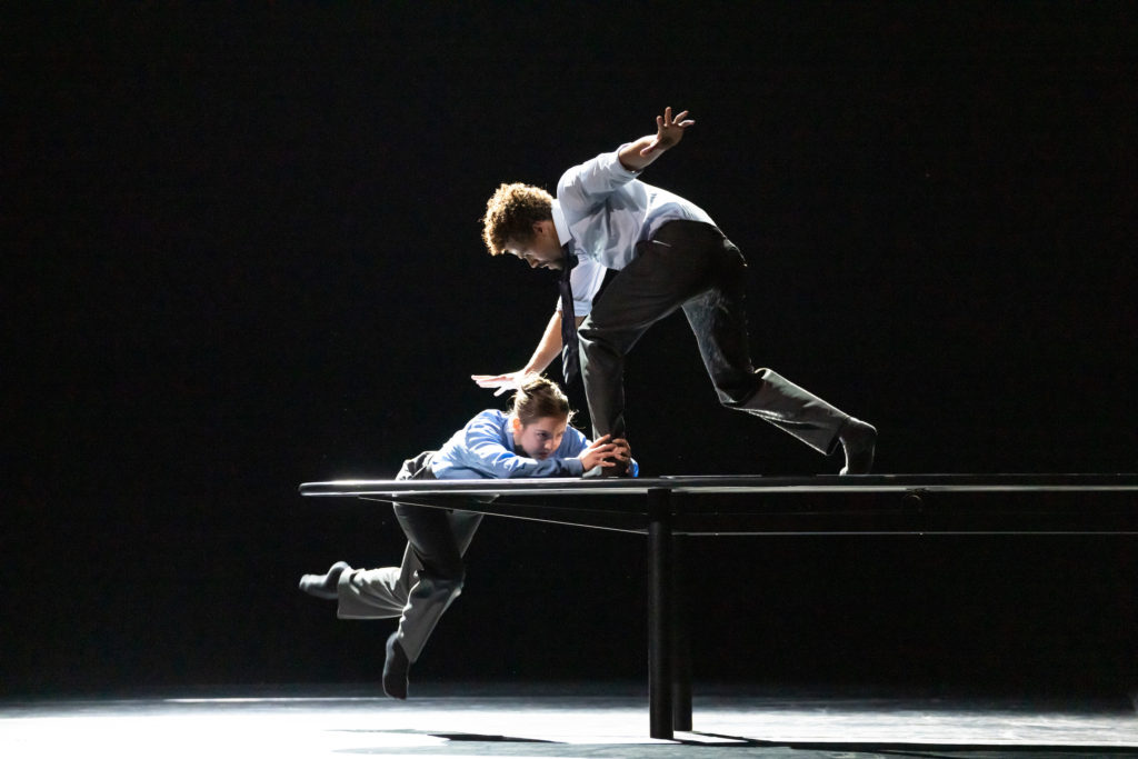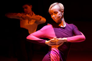 It’s common for stage choreography to be adapted for film, but Wim Vandekeybus’ pandemic production Draw from Within flipped that process: commissioned for online broadcast as part of Rambert’s lockdown program last year, it has now been adapted for live performance. The online version — reviewed in Dance International in October 2020 — followed the dancers through various locations in Rambert’s headquarters, the camerawork fully incorporated into the dance, to dynamic effect. How would it translate to the Sadler’s Wells stage, where we watch a single space from fixed seats? Remarkably well, as it turned out. That’s partly because Draw from Within was designed for livestreaming, and is (like Whitley’s) a suite of broadly self-contained scenes, each with its own effects and ideas; but it’s also thanks to Rambert’s knockout dancers, who ranged over the space with a combination of poise, precision and explosiveness that packed a physical punch way back into the auditorium.