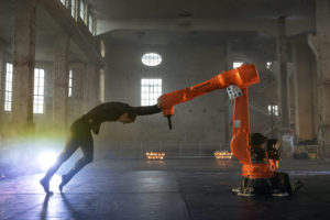 When I recently spoke with Fernando on the phone, he explained how different it was to choreograph for a robot, which does not give any feedback; it just does what you tell it. That the animation of KUKA works so effectively is partly due to composer Lilijan Waworka’s very emotional and evocative music, with a soft piano tune that meanders around the sound of the orchestra like a voice whispering secret words of love. When Fernando commissioned the soundtrack, he asked Waworka to make music full of love.