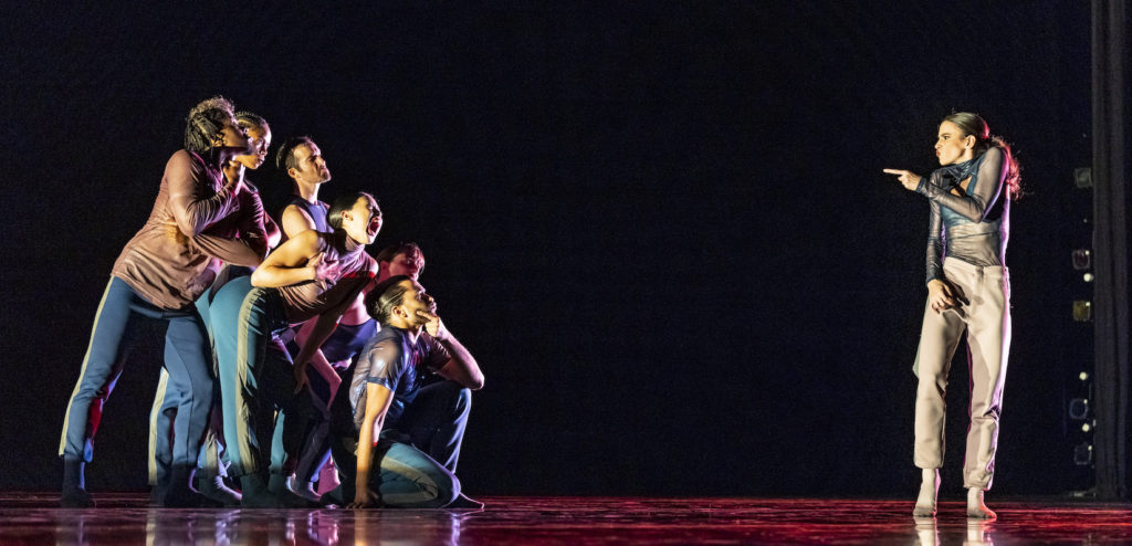 It was great, accessible dance, except that it was meant — and we needed it — to be more. According to introductions given from the stage by artistic director Tina Finkelman Berkett, the Neenan work was about freedom and the Taylor work about rejecting conformity and embracing our individuality, while Baye & Asa’s wasa reflection on the opioid epidemic and the role the Sackler family played in it. In fact, there was not much change in mood or movement style from piece to piece (no sense of tragedy, for example, in the opioid piece). So, while the dancers were uniformly a joy to watch, even their brilliant, athletic technique became ever so slightly boring by the end.