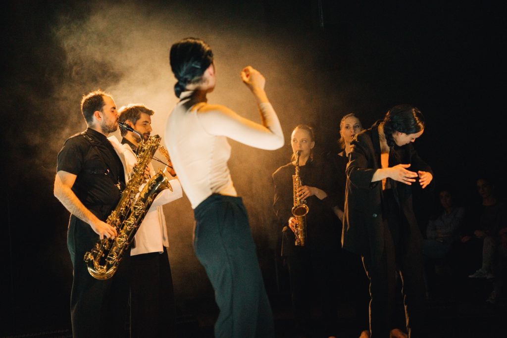 Roberta Pisu is a dancer and choreographer with the ballet at the Gärtnerplatztheater. Pisu has started a collaboration with the Arcis Saxophone Quartet in order to give young choreographers a platform for their work. In March, she and Italian choreographer Matteo Cavone presented an evening with their own new pieces, collectively titled 2 x Getanzt (Danced Twice). Both created following these rules: the works would be created in five days to the same music, which would only be delivered five days before the start of rehearsals. Also, the musicians had to be part of the staging, and props and costumes would be found by the choreographers themselves.