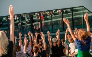 That Munich has turned into an attractive city for contemporary dance is to a great extent due to the initiative of three women: Tina Mess, Simone Schulte-Aladag, and Miria Wurm. In 2014, they founded Tanzbüro, which Mess described in an interview as “an agency to empower and foster the free [i.e. independent] dance scene.” This includes offering networking opportunities and lobbying for the sector, as well as running a studio and helping with marketing artist events. Tanzbüro has also initiated an exchange with The Work Room in Glasgow, both venues offering opportunities for artists to work in their studios without the pressure of having to create a performance.
