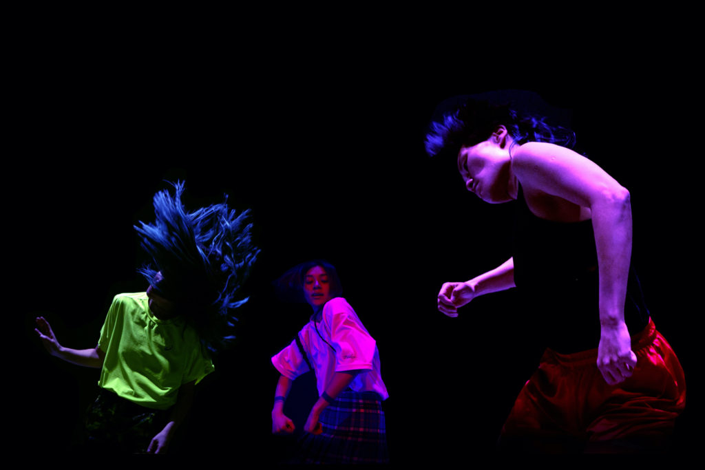 At the start, three performers dressed in monochrome primary colours unceremoniously walk through the auditorium to take their positions across the stage from each other. Be Heintzman Hope, Baco Lepage-Acosta, and Brian Mendez are undeniably cool in loose-fitting, bright, androgynous clothing, a blend of recent fashion fads of normcore and athleisure. The trio looks poised to walk off the street into a coffee shop, a gym, a rave, or even a museum. And then the dancing begins.
